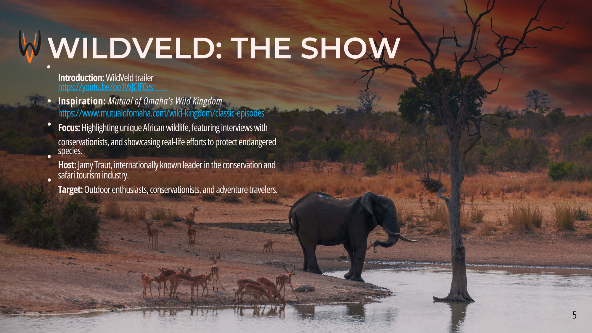 The premier platform for African outdoor adventure and conservation storytelling. Reviving the spirit of Mutual of Omaha’s Wild Kingdom, WildVeld showcases real people protecting wildlife and preserving Africa’s wild heart.