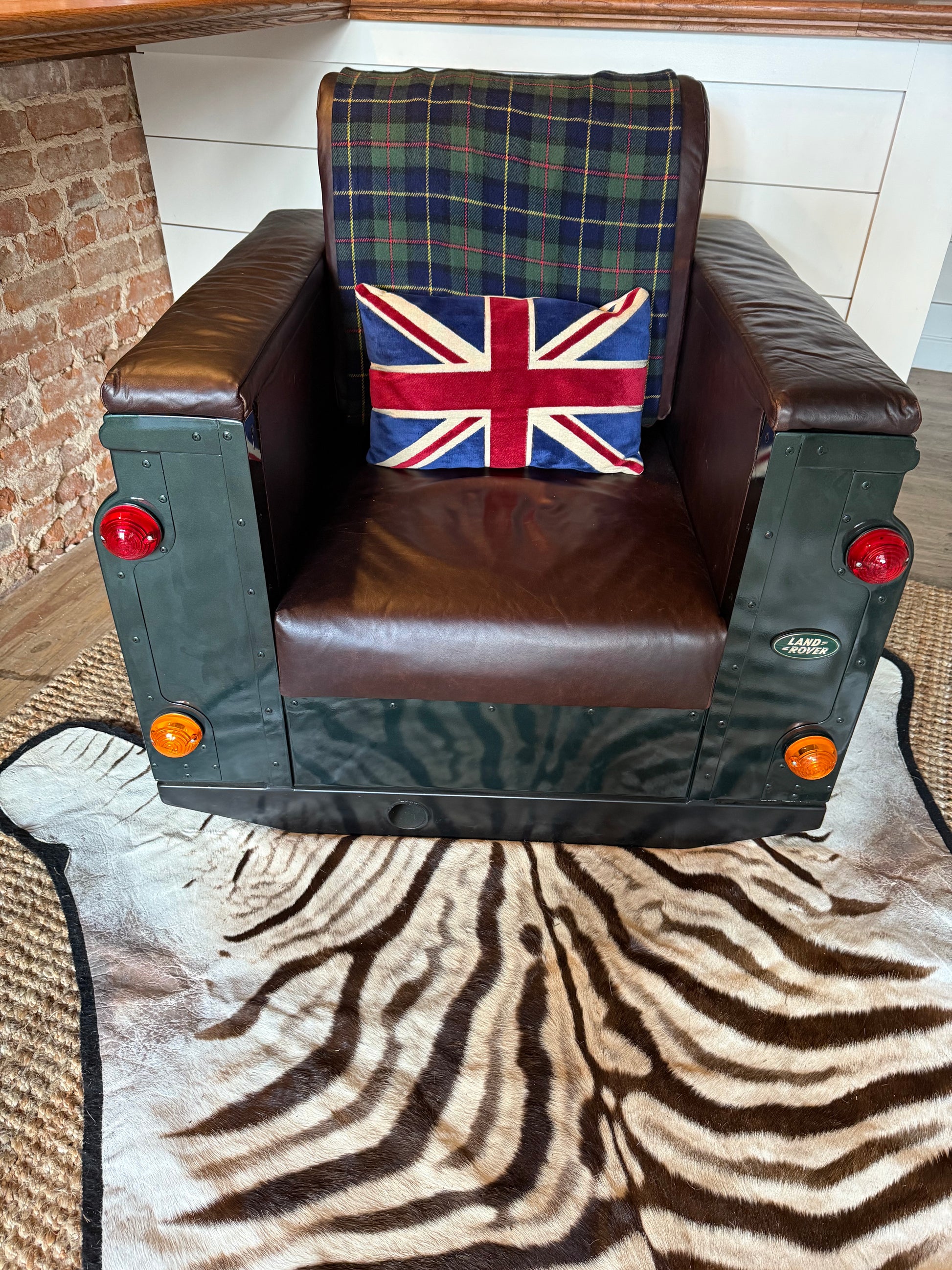 Bring adventure home with this one-of-a-kind club chair, handcrafted to capture the rugged charm of the iconic Land Rover Defender, transforming authentic design elements into a bold statement piece for your home, lodge, or office.